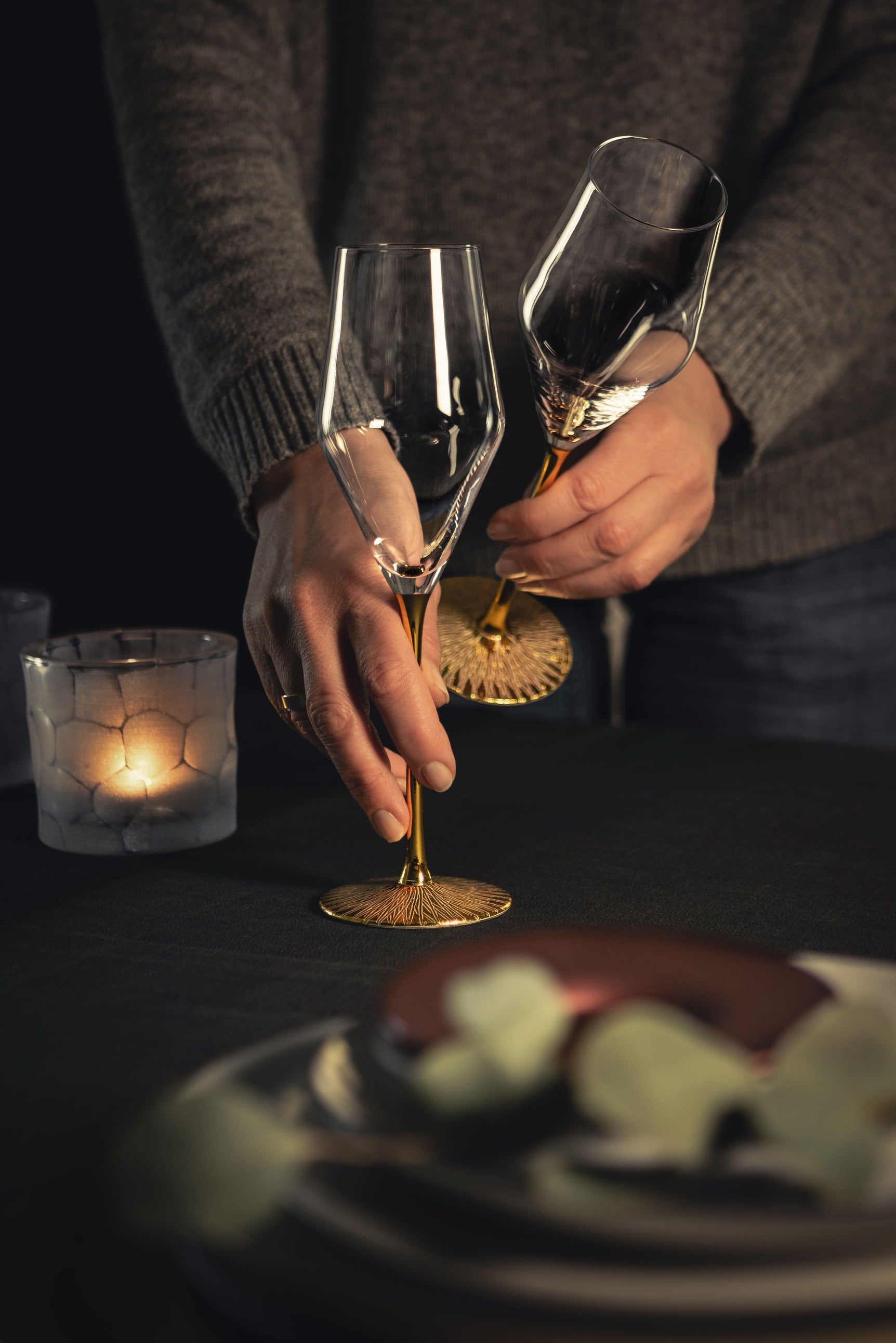 Avec leur revêtement en or 24 carats, ces verres à champagne uniques ajoutent une touche de luxe à chaque table. Chaque verre est soigneusement raffiné à la main, garantissant une finition unique et de haute qualité qui se démarque.